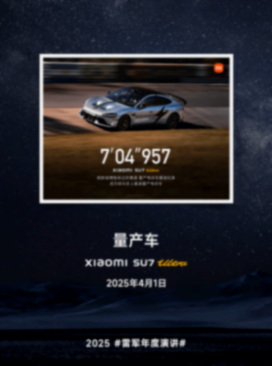 ?面對天氣的阻礙,從去年10月9日一直等到28號,最終只用一圈,小米SU7 Ultra原型車成功證明自己,再到今年4月1號,小米SU7 Ultra量產版用兩項震撼人心的成績回應質疑。