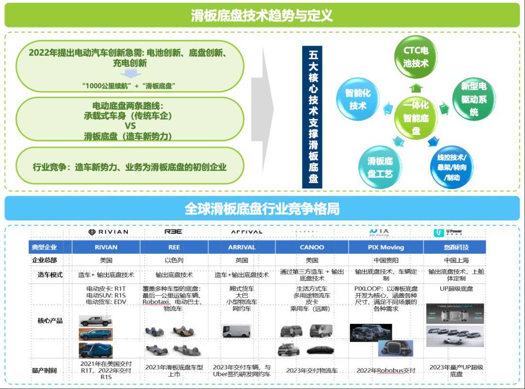 吉利汽車中央研究院資深總工程師呂健波指出:“在電動汽車創(chuàng)新急需電池、底盤、充電突破的背景下,由CTC電池技術(shù)、新型電驅(qū)動系統(tǒng)、線控技術(shù)(懸架/轉(zhuǎn)向/制動)、滑板底盤工藝、智能化技術(shù)五大核心技術(shù)支撐的滑板底盤,作為電動底盤的創(chuàng)新路線,已吸引RIVIAN、REE等全球造車新勢力和初創(chuàng)企業(yè)布局,它們在造車模式、核心產(chǎn)品和量產(chǎn)進(jìn)展上各有特點(diǎn),共同構(gòu)成了全球滑板底盤的競爭格局。”
