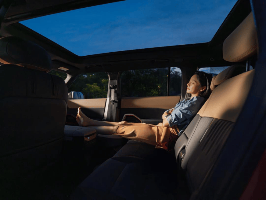 在場景創新上,新車以“36境”全場景解決方案精準覆蓋多元需求。尾門集成“切配+烹飪”雙分區承重桌板,搭配同級最強6.6kW外放電功能,支持電磁爐、咖啡機等多臺電器同時運行,5分鐘即可搭建完備“山野廚房”,讓戶外手沖咖啡、精致料理輕松實現。純電版160L防水前備箱可直接沖洗,配合“釣魚模式”的魚竿固定裝置,徹底解決漁具收納與異味問題;“小憩模式”則能快速變身都市休憩空間,座椅自動放平、遮陽簾關閉,同步聯動白噪音與空調,成為高效“充電”的第三空間。更有“麻將模式”一鍵展開側邊帳,打造360度遮陽避雨的“戶外客廳”,滿足社交需求。