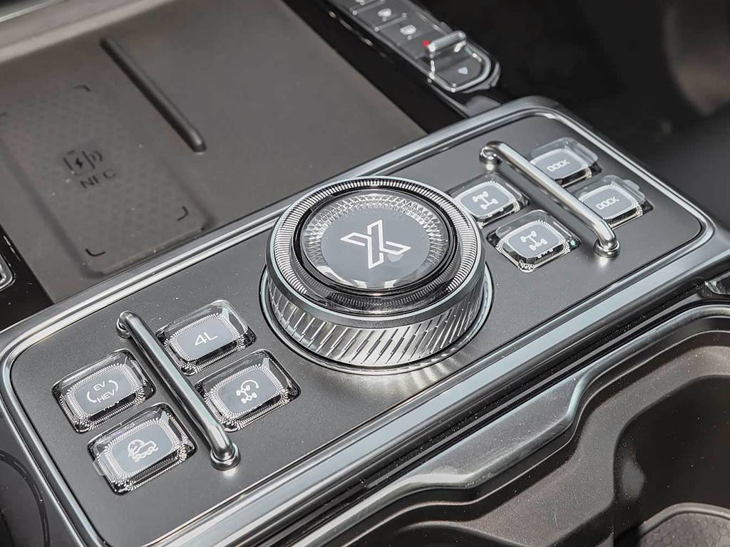 其次,作為一款采用非承載式車身+解耦四驅的中大型插混SUV,縱橫G700的動力和越野性能也都很強悍。就說動力,2.0T縱置混動專用發動機最大功率155kW,系統總功率為560kW,總扭矩為795牛·米,傳動匹配最新一代混動變速箱,滿油滿電續航達到1400km。