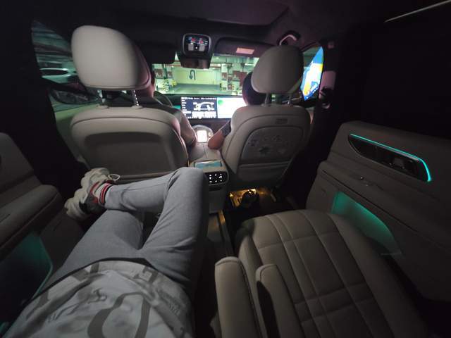 前排座椅,副駕高低不能調節,沒有腿托,著實是敗筆,如果有個襯托式小腿托,那才是有情緒價值的東西,顯然深藍還沒有發展到這個地步,希望下一代的深藍S09上能夠出現那種可以調節腿托加長10公分左右的小腿托。