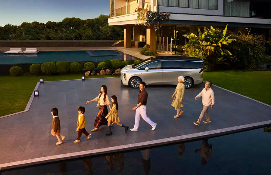 內飾方面,從發布的海報來看,該車將配備二排小桌板、帶有可伸縮物理遮陽簾的全景天窗以及疑似后排娛樂屏等。同時,其還將搭載高通SA8775P芯片,并且搭載50英寸全景AR-HUD抬頭顯示、雙便攜式智控屏等,形成8屏空間。