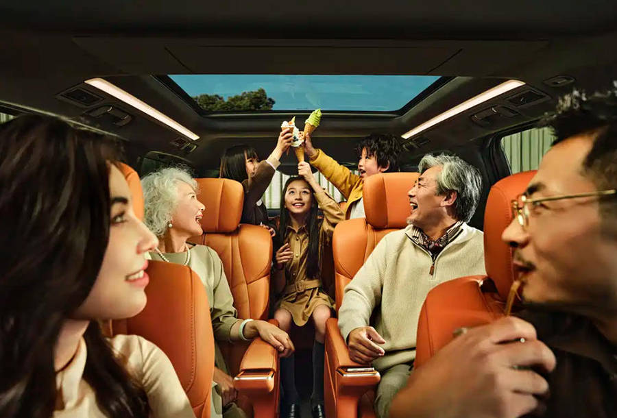 車身側面來看,其整體線條更顯平直,一條腰線從前大燈一直延伸至尾部,更加增強了車身側面的視覺長度。同時,方正筆直的線條也是能夠為車內乘員艙空間表現做出的考量。尾部方面,該車采用光羽流焰貫穿式尾燈組,內嵌257顆超紅光LED,在惡劣天氣下具有更高可見度,平時也可減少對后車司機的眩目干擾。同時,其還配備標志性的“逍遙智行”小藍燈。