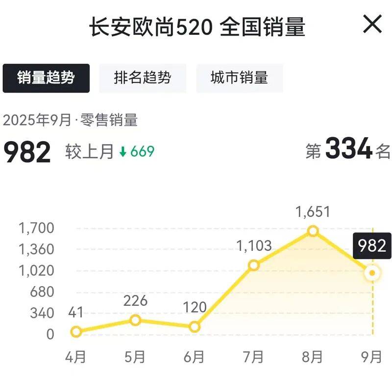 此外,長安歐尚的另外一款車型,長安歐尚520在9月份的銷量為982輛,相比今年8月份的銷量1651輛,環(huán)比下滑40.52%。