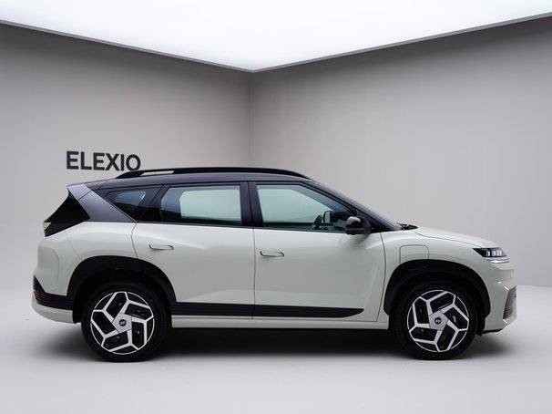 側(cè)面通過A柱的黑色涂裝與銀灰色D柱搭配,輔以黑色飾板形成了懸浮式車頂效果。車尾部分,貫穿式點陣尾燈向兩側(cè)上揚,與D柱飾板巧妙銜接。后包圍也采用了與車身不同色的多層結(jié)構(gòu),整體搭配看上去更有層次感。