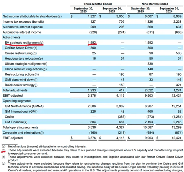 例如通用汽車(chē)雖然業(yè)績(jī)超預(yù)期,而且在華業(yè)績(jī)也實(shí)現(xiàn)四連盈,但細(xì)究其財(cái)報(bào)后,我們會(huì)發(fā)現(xiàn)了16億美元的電動(dòng)車(chē)資產(chǎn)減值。