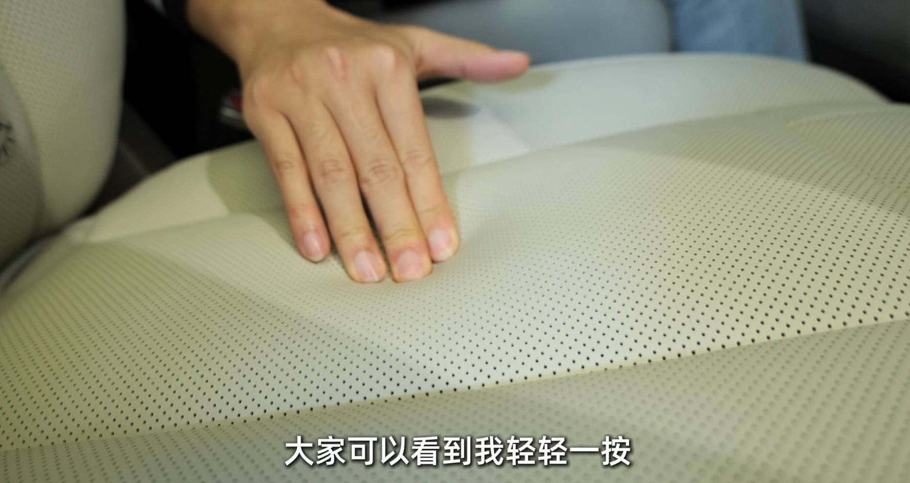 當然啦,騰勢N8L不僅僅是把前排乘客照顧得很好,二排三排也都不差,首先是坐的方面,整體它的坐墊像承托你屁股的部分很柔軟。大家可以看到我輕輕一按,就是一個很大的凹陷,因為它用的是高回彈的海綿,坐上去就有種下陷感。但是兩邊的側翼,它就是很有韌性的那種,所以大轉彎的適合它也能托住你,能給你上半身很好的支撐性。它兩個座椅都支持座椅通風/加熱還有按摩,帶家人出去玩或者是用來做商務接待都很合適。娛樂性方面,它的后排娛樂屏跟前排的中央大屏一樣是17.3英寸,顯示效果很不錯,后兩排看劇很方便。