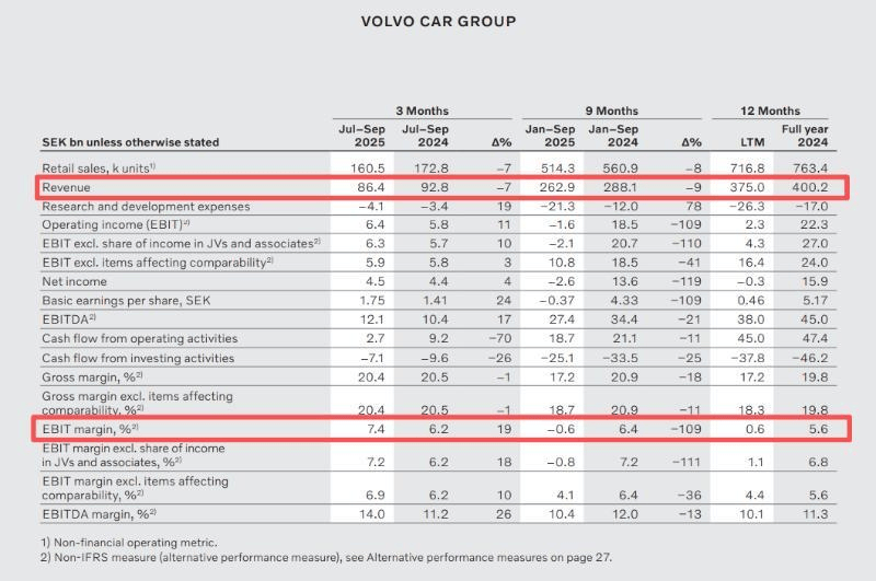 在行業寒冬中,沃爾沃成為歐系陣營的“異類”。7-9月,沃爾沃交付量16.05萬輛、營收864億瑞典克朗,雙雙同比下滑,然而,得益于裁員減負以及供應鏈優化帶來的成本壓縮,沃爾沃的營業利潤和凈利潤逆勢上漲,凈利潤由去年同期的42.1億瑞典克朗,增至51.95瑞典克朗。