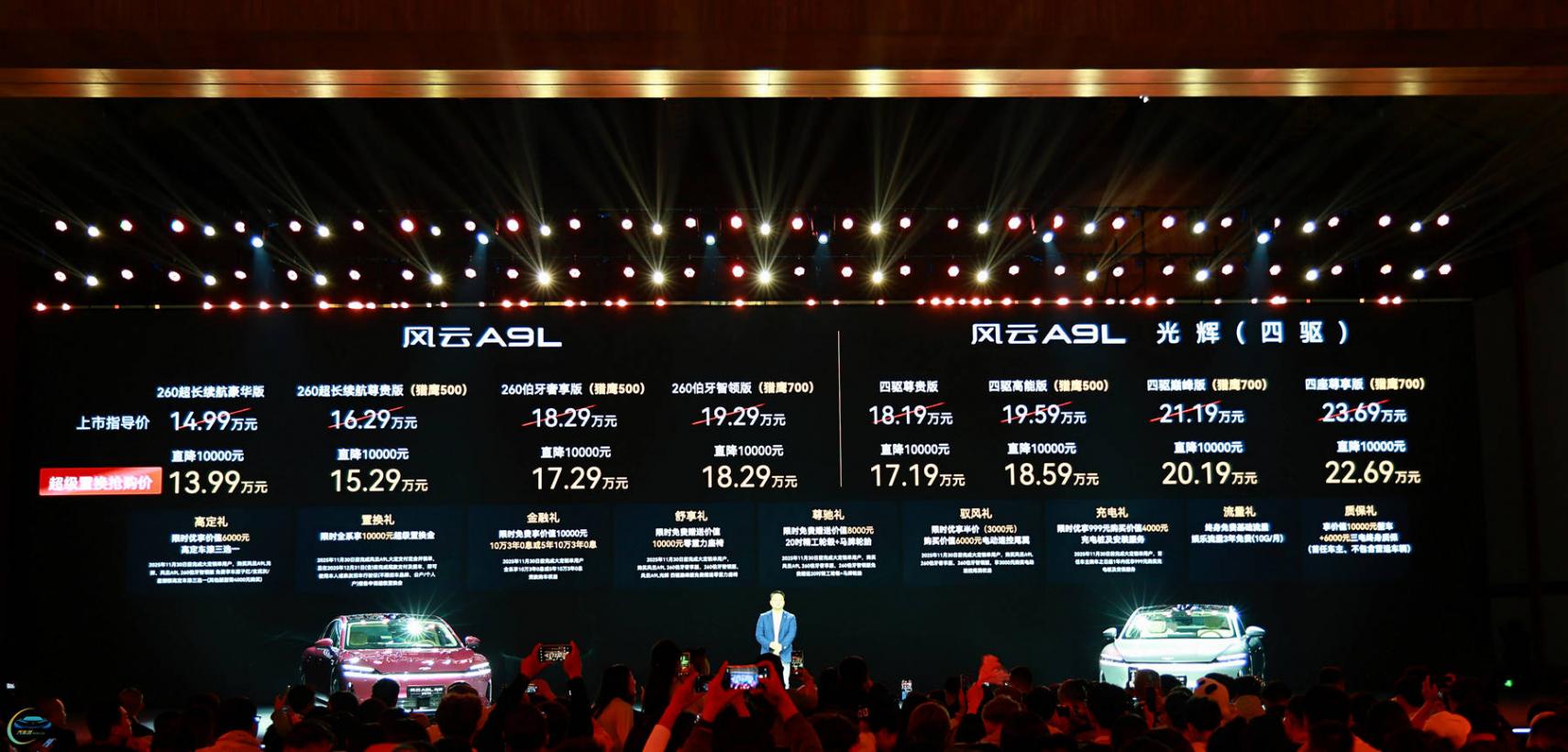 當(dāng)晚風(fēng)云A9L光輝序列全球上市,新車推出四款版型,分別是四驅(qū)尊貴版、四驅(qū)高能版、四驅(qū)巔峰版和四座尊享版,超級(jí)置換搶購價(jià)17.19萬-22.69萬元,同時(shí)配套九大購車權(quán)益,涵蓋了高定、置換、金融、舒享、尊馳、馭風(fēng)、充電、流量、質(zhì)保多重禮——現(xiàn)在,中國旗艦座駕的橫空出世,壓力給到了傳統(tǒng)豪華品牌。