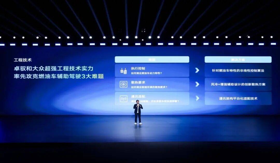 “要做實用、好用、敢用的燃油車增強輔助駕駛”,為了實現這一目標,一汽-大眾和卓馭科技針對性開發(fā)燃油車適配的駕駛輔助技術,一同重構了控制算法、打通了通信鏈路,完成了超1400天、10萬公里的聯合標定試驗,以及超過30萬公里的全國驗證。