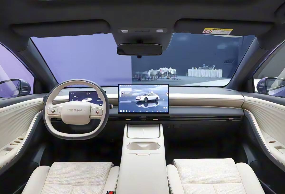 來看車內,新車提供米白與雅黑兩種配色,采用環抱式布局,配備256色氛圍燈及大面積軟質包裹。中控臺設計簡潔,搭載15.6英寸懸浮式屏幕,內置高通驍龍8775芯片與NISSAN OS系統,集成智能語音、高德定制導航、無線互聯等功能。此外,新車還提供50W無線快充、6揚聲器音響等配置。