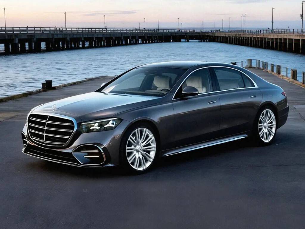 首先,新款S級渲染圖映入我眼簾的第一印象,就是感覺前臉又肉眼可見地變大了。其中,進氣格柵造型被進一步拉大,配合兩側的開眼角式大燈,整個的視覺效果確實比現款S級要顯得大氣了許多。