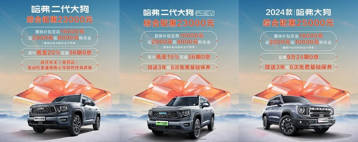 此外,對(duì)于偏向硬派風(fēng)格的消費(fèi)者而言,哈弗二代大狗和2024款哈弗大狗也提供了誘人的優(yōu)惠政策。購(gòu)車者可享受高達(dá)2.3萬元至2.5萬元的綜合優(yōu)惠,包括置換補(bǔ)貼、現(xiàn)金優(yōu)惠以及低首付或0息金融政策等。這些優(yōu)惠將進(jìn)一步鞏固哈弗在SUV市場(chǎng)的地位。