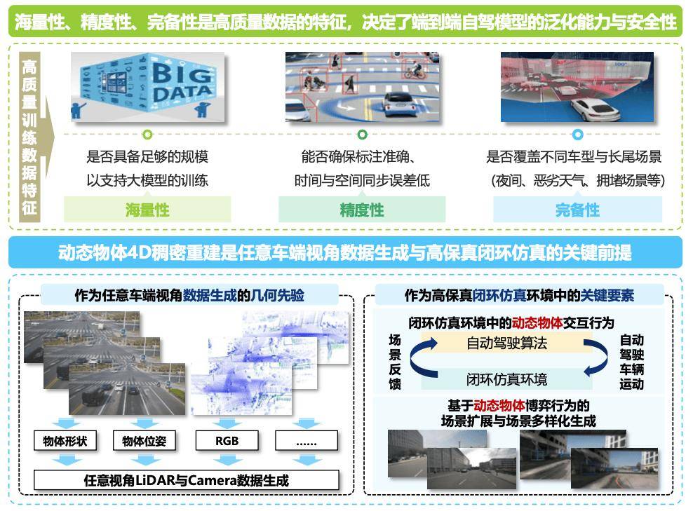 清華大學助理研究員何雷在三十二屆中國汽車工程學會年會暨展覽會“車路云一體化量產關鍵技術”專題論壇中表示:端到端自動駕駛正引領智能汽車技術發展的主流方向,面向任意車型的高質量真值數據是端到端自動駕駛量產落地的重要基礎,但當前存在各車企間數據不互通、采集標注成本高昂、高價值場景稀疏和單車型數據孤島等問題。其研究團隊首創從路側傳感器數據重建生成任意車端視角的傳感器數據,構建端到端自動駕駛數據真值,并顯著降低智駕大模型在大規模數據采集與高精度真值標注方面的成本。