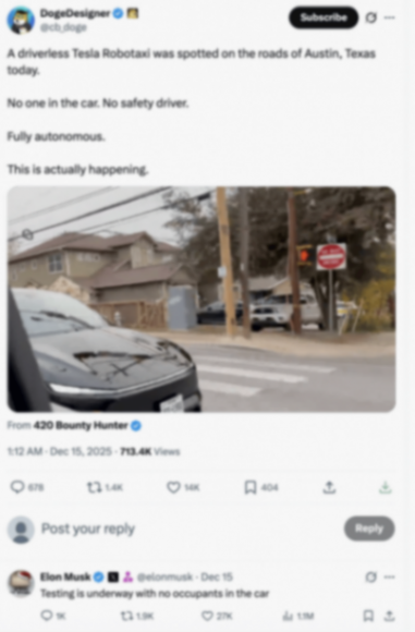 昨天,一輛在美國奧斯汀開放道路上無人駕駛的特斯拉Model Y,被人發到了X上。