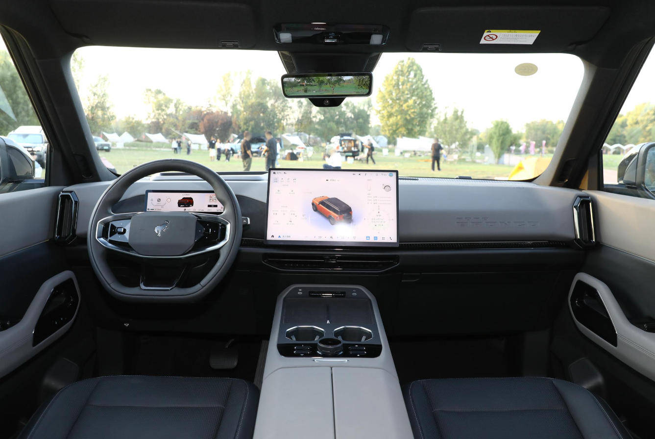 比如雖然這是一款新能源SUV而且采用的是承載式車身,但是其在外觀上,從烈馬燃油版那里傳承來的刀劈斧剁的方盒子造型設計以及“BRONCO”的品牌標識,還是會吸引相當追求硬派的消費者的芳心,從心智層面也能夠起到很好的搶占作用。