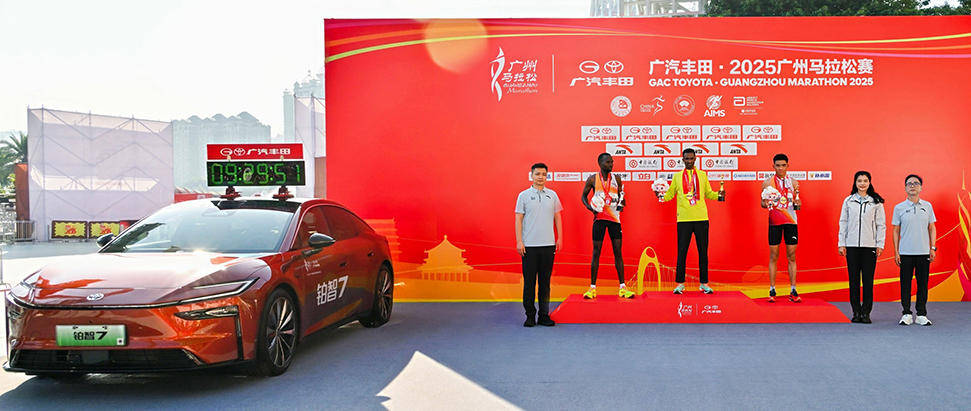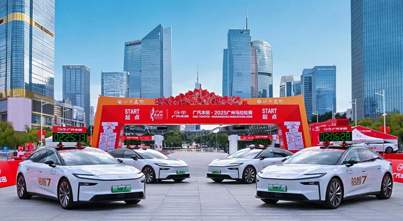 12月21日,廣汽豐田·2025廣州馬拉松賽鳴槍開跑。在3萬名跑者前方,一輛流線型純電轎車格外引人注目——豐田鴻蒙座艙豪華旗艦D級純電轎車鉑智7作為賽事領航車,這是廣馬歷史上首次由豪華純電車型擔當此重任。