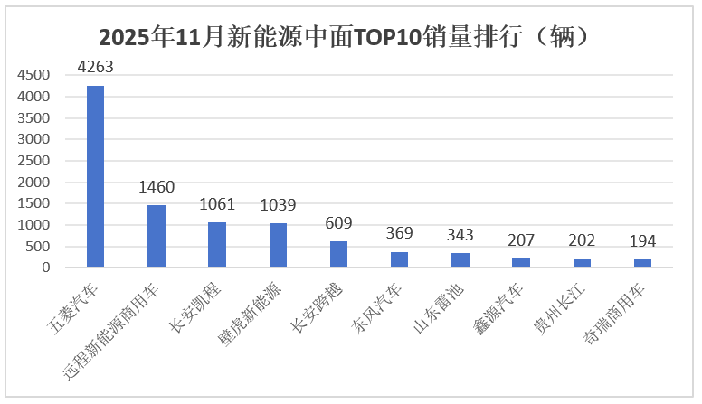 根據終端上牌信息,2025年11月新能源大面、中面及微面銷量前10排行如下: