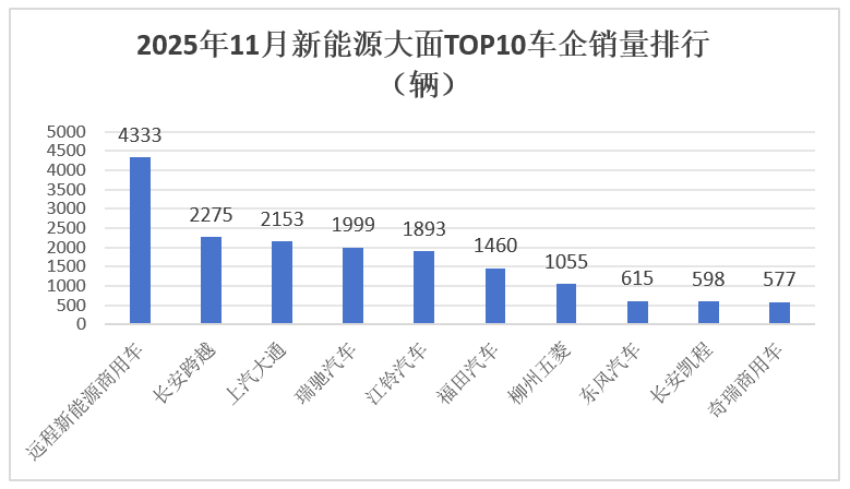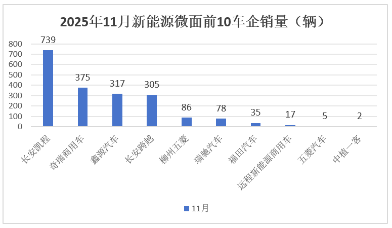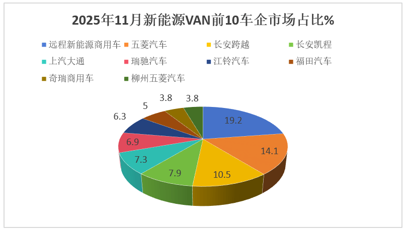 上圖表顯示,在2025年11月新能源VAN前10車企銷量中,以下特點比較明顯: