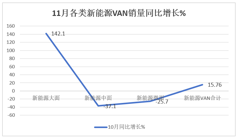 大面成為新能源VAN增長的惟一引擎。2025年11月新能源大面銷量超1.8萬輛,同比大增142.1%,是惟一實現同比增長的車型;其市場占比達到60.3%,且占比同比增加31.5個百分點,也是惟一占比同比增加且大幅度提升的車型。