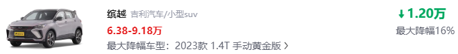 第三臺(tái)車吉利繽越,最大降幅比例16%,售價(jià)下調(diào)1.2萬,裸車起步6.38萬,頂配9.18萬,這個(gè)定價(jià)區(qū)間和廣汽傳祺GS3,以及長安CS35 PLUS是差不多的。吉利繽越最高的時(shí)候一個(gè)月賣出1萬多臺(tái),去年總銷量賣出9萬臺(tái),相對于前兩年是差不多的,三年保值率在61%。