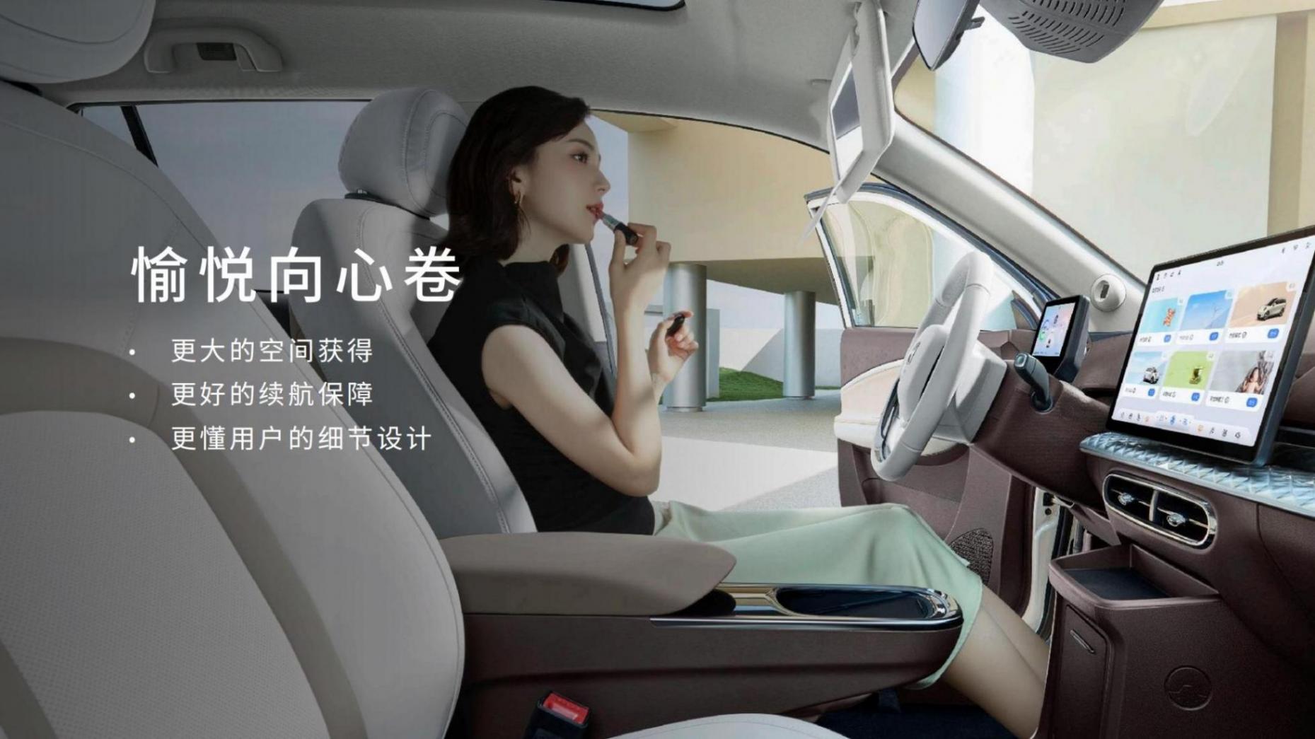 內(nèi)飾方面,新車采用乳白色雙色內(nèi)飾,富有年輕時(shí)尚色彩。中控臺(tái)采用6.2英寸全液晶儀表盤,搭配15.6英寸懸浮式中控大屏的設(shè)計(jì)布局。