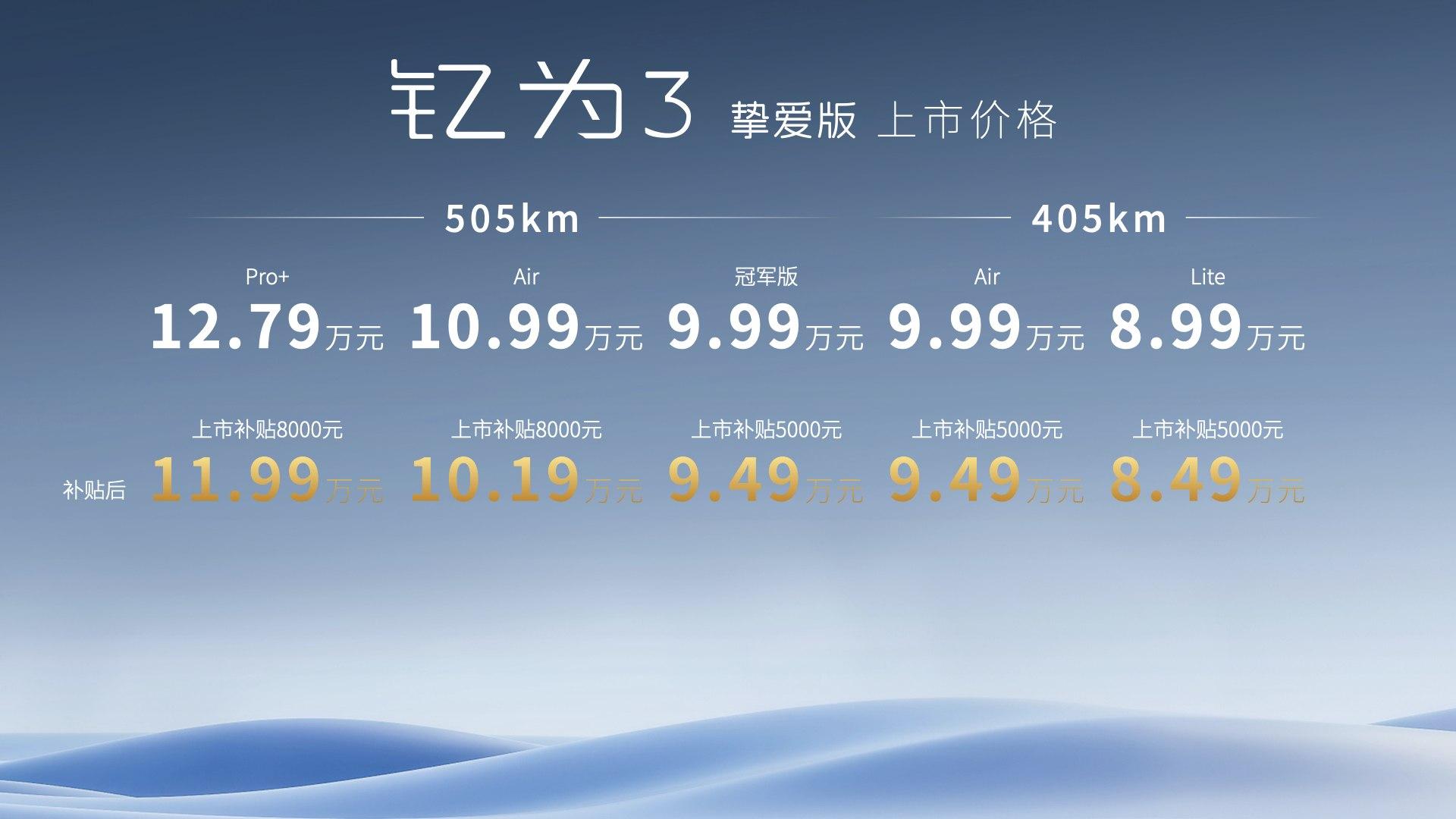 江淮釔為3摯愛版共推出了7款車型,指導價區(qū)間為6.99萬至12.79萬,在續(xù)航方面提供了330km、405km和505km三種可選,除了指導價6.99萬的330km Lite版本,其余6款車型,江淮釔為均推出了不同幅度的補貼(4000元至8000元)。