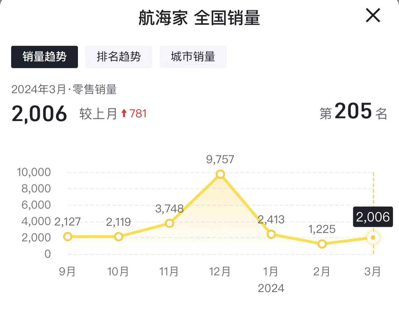 值得關(guān)注的是,此次召回的航海家已經(jīng)成為當(dāng)前林肯在國內(nèi)市場的銷量主力,在去年其銷量更是一度迫近萬輛,不過這種良好的勢頭并沒有持續(xù),進入2024年其銷量一直在2千輛左右徘徊。如今在召回信息的影響下,對林肯航海家無疑更將是“雪上加霜”。