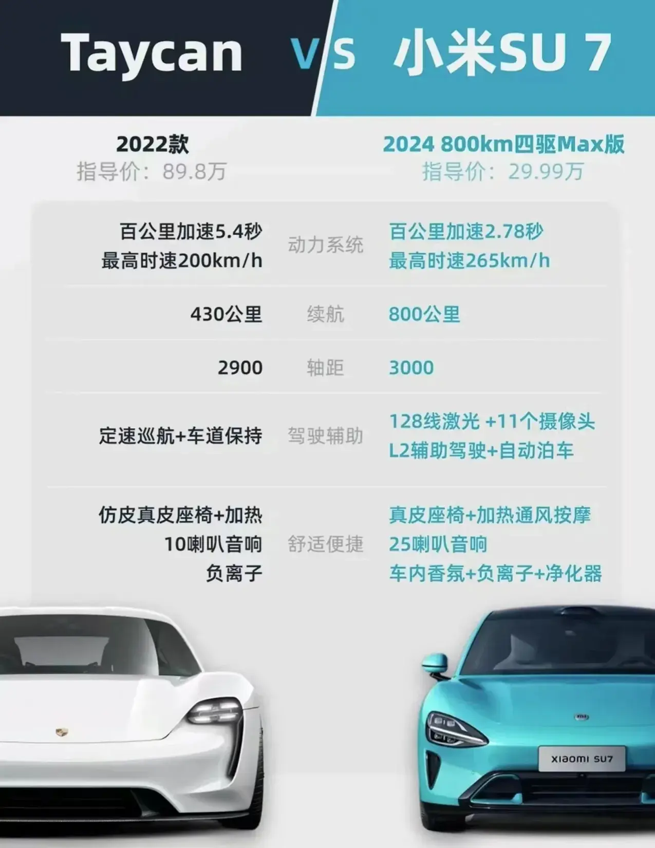 在電動汽車市場競爭日趨激烈的今天,小米SU7和保時捷Taycan作為兩款備受關注的車型,各自憑借其獨特的優勢在市場上占有一席之地。本文將從價格、性能、配置、娛樂、智駕以及性價比等多個維度對這兩款車型進行全面對比分析。