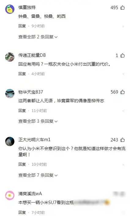 然而,市場的反應似乎并不買賬。一部分網友的質疑聲中,我們可以感受到消費者對這種跨界合作的不確定和憂慮。在他們看來,科技與傳統飲料之間缺乏必要的聯系,這種合作可能會稀釋小米作為科技品牌的核心價值,甚至影響到小米SU7的市場表現。在這種觀點下,雷軍的站臺行為被認為是一種營銷上的“失誤”。