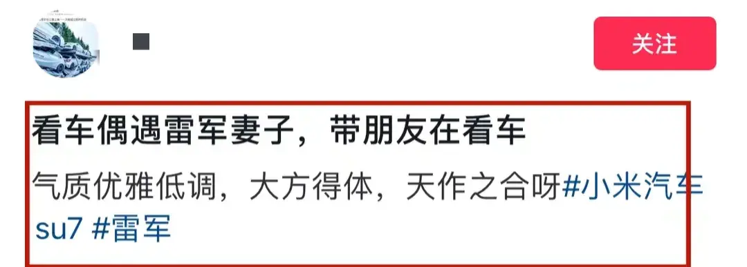 愚人節(jié)這天發(fā)生了一件讓人啼笑皆非的事情,有網(wǎng)友拍到雷軍妻子張彤陪鄧文迪看SU7車的照片,沒想到照片發(fā)出后很多網(wǎng)友竟然把張彤誤認(rèn)成了推銷車的銷售人員,真不知道該說鄧文迪氣場(chǎng)強(qiáng)大,還是張彤太低調(diào)了呢?
