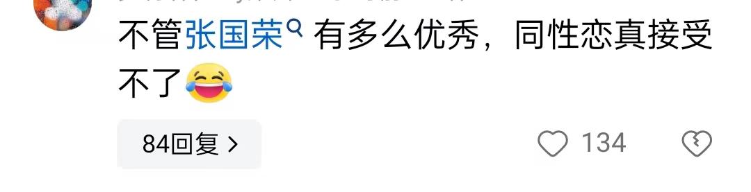 這引起不少網友的熱議,有網友評論道:“不管張國榮多優秀,我還是接受不了同性戀。”
