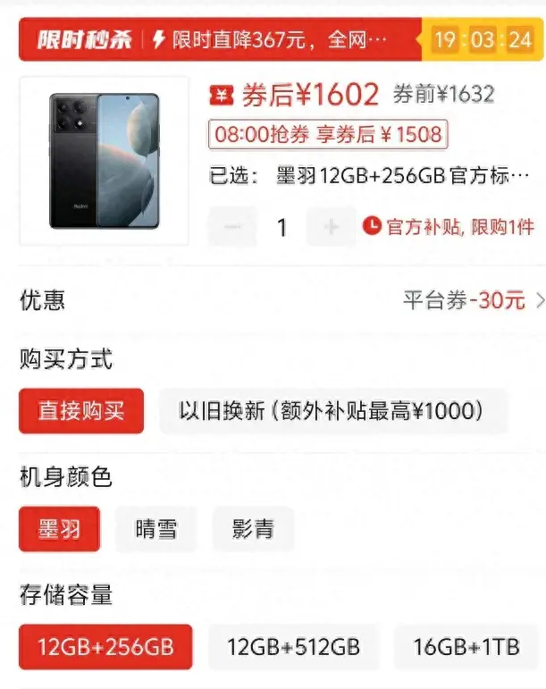 第一款紅米K70E,如果你覺(jué)得1999不夠性價(jià)比,但是1602甚至來(lái)到1508呢?是不是性價(jià)比拉滿了,這也是我為什么第一個(gè)推薦它的原因