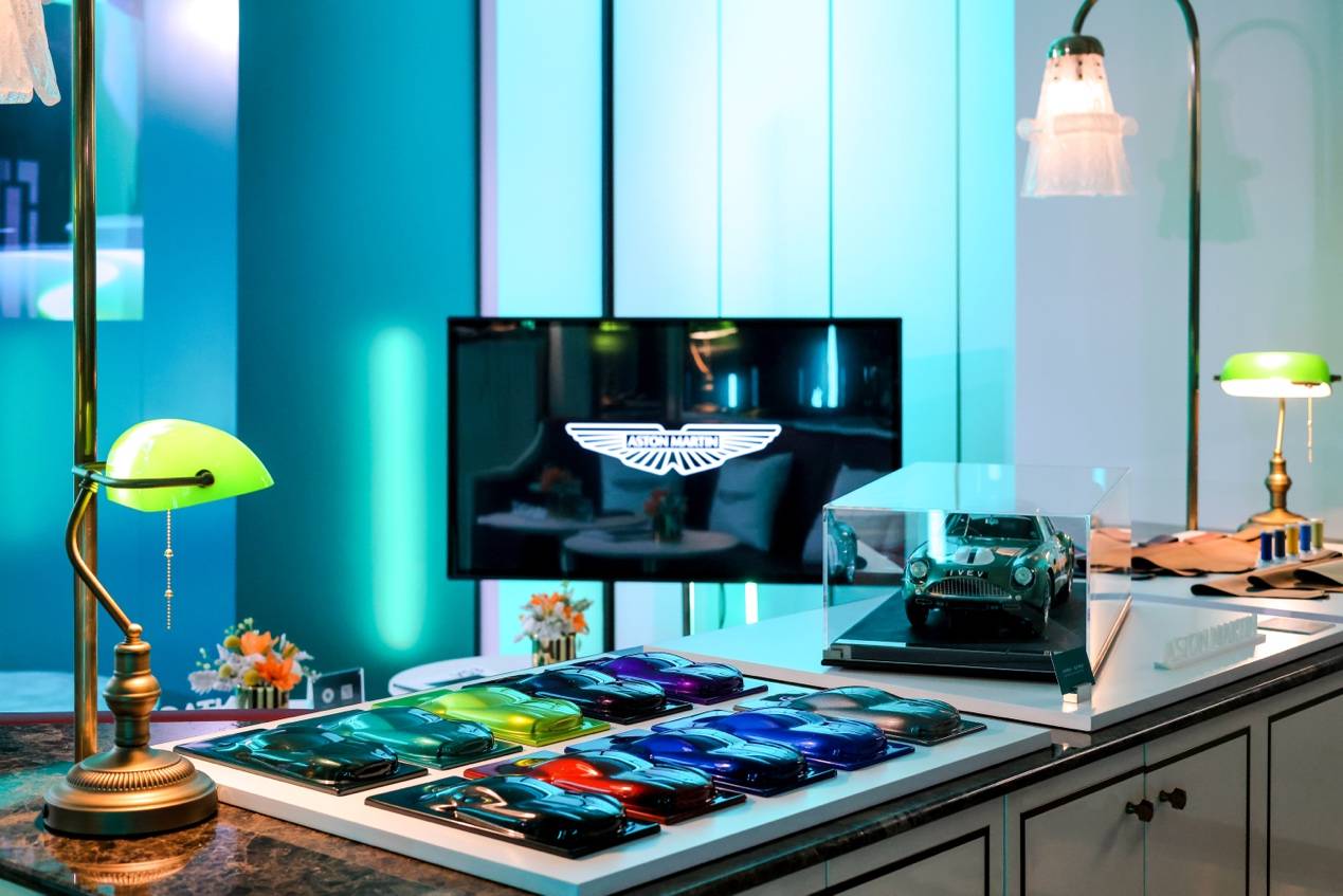 活動場地內設有F1競速空間,其中豎立著的巨幅報紙,靈感源自英國精英在享用下午茶時閱讀報紙的傳統,其中用圖片和文字詳盡展現了阿斯頓·馬丁的百年品牌歷史。櫥窗內陳列了F1賽車手的專業裝備,展示著阿斯頓·馬丁的輝煌競速傳奇。而在精心設計的Q定制區域,現場嘉賓不僅可以近距離觀賞和感受到阿斯頓·馬丁的定制漆面、高級皮革工藝,還能夠定制專屬于自己的F1車隊帽。