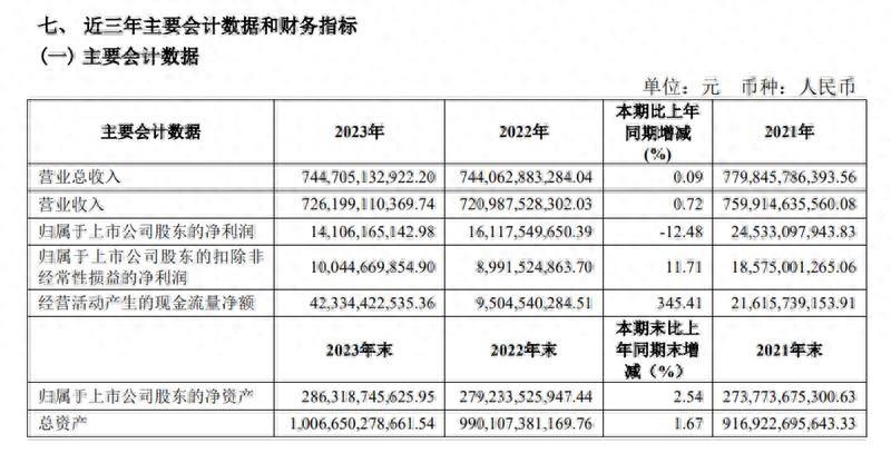 3月30日,上汽集團發布2023年年度業績。財報顯示,2023年上汽集團實現總營收7447.05億元,與2022年(7440.62億元)營收基本持平,但與2021年(7798.62億元)相比減少4.5%。