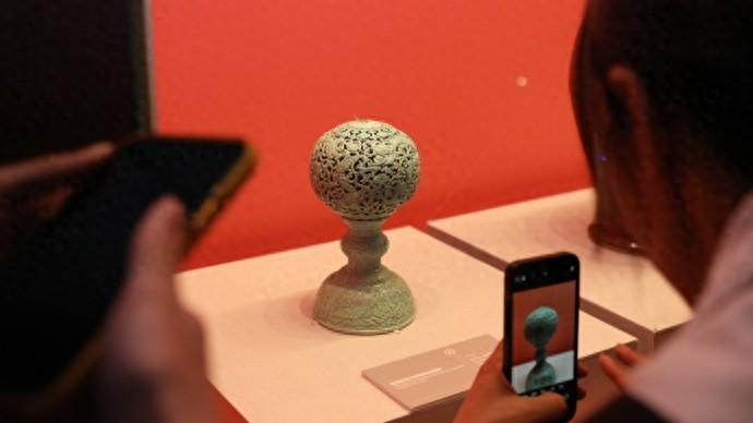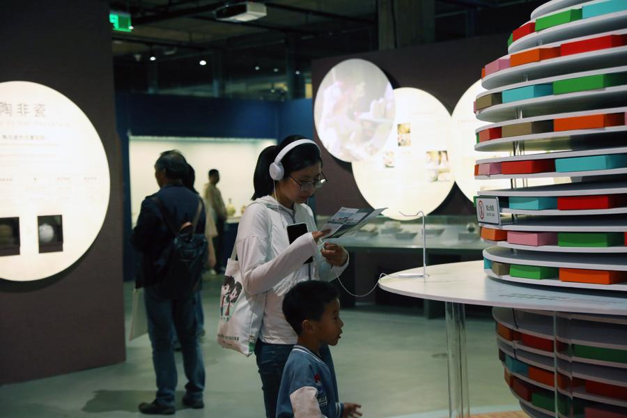 記者在現場看到,“陶瓷之技”展區占了整個展覽區域二分之一,是本次展覽的重點參觀區域。以代表中國古代制瓷工藝頂峰的釉彩大瓶“瓷母”為藍本制作的藝術裝置佇立在展區中央。跟隨展區參觀動線,觀眾可以深入了解陶瓷制作工藝的關鍵工序。同時,展覽現場還陳列出陶瓷制作原料、工具、制作過程半成品,設計了“陶藝DIY”等互動展項,帶領觀眾快速體驗陶藝。
