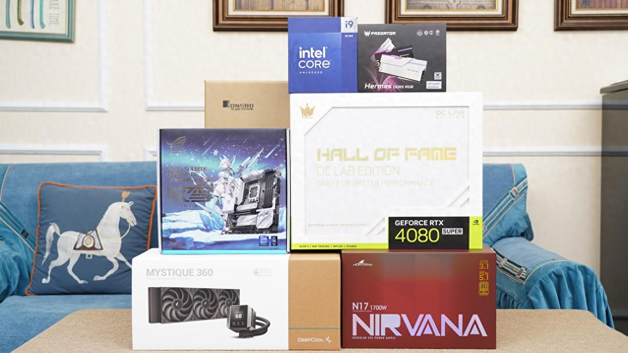 似乎啰嗦的有些多,言歸正傳,今天三哥要給大家分享一臺M-ATX海景房主機——該主機基于Intel 酷睿i9 14900K+ROG STRIX B760-G GAMING WIFI S小吹雪+宏碁掠奪者 Hermes DDR5 6800 RGB 16G×2+金士頓 KC3000 1TB+影馳 RTX 4080 SUPER HOF OC LAB Master-X+九州風神 MYSTIQUE 冰暴360+長城 N17 1700W+喬思伯 D300打造而成,性能非常強悍,同時黑白配色的顏值也非常不錯,下面就將折騰過程及測試體驗分享給大家吧。