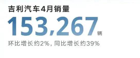 吉利集團后勁十足,4月汽車銷量15.3萬輛,同比增長約39%,其中,新能源銷量5.14萬輛,同比增長75%,新車出口3.81萬輛,同比增長75%,1至4月累計銷量達到62.9萬輛。
