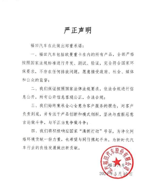 但福田汽車并未對此妥協,福田汽車副總裁、新聞發言人劉旭光表示:“讓人陷入自證陷阱,是成本最低也是最惡毒的手段,如果不加以制止,正本清源,每個企業、每個個體都可能成為網絡暴力的受害者”。
