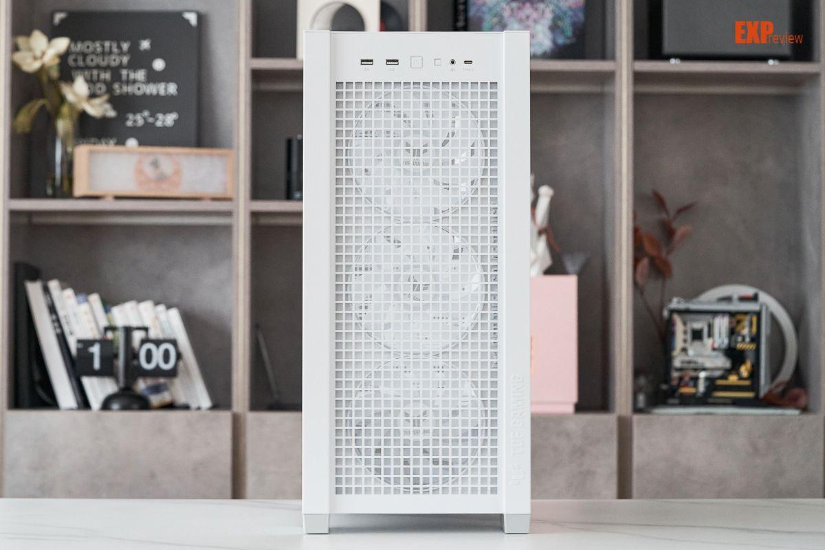 在機箱的正面,TUF GT302做了內凹的設計,兩道筆直的邊框襯托出大面積的網狀開孔,使正面不會過于單一,而每個正方形的開孔面積都很大(8*8mm),開孔數量多到幾乎布滿了整個正面,毫不吝嗇地透露出“我散熱很強”的意思。