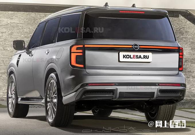 從發布的新車外觀渲染圖片中可以看出,日產全新一代途樂車型頭部換裝了全新造型的點陣式進氣格柵,兩側提供了上下分層式LED頭燈組,并同步加入了最新家族式發光LOGO車標。車尾部分選用了隱藏式排氣布局,上方貫穿式LED尾燈組也進一步提升了車型辨識度。