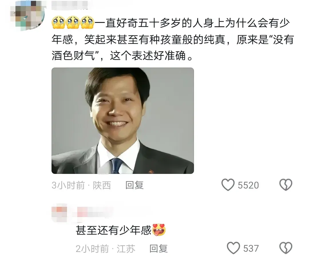 身高180+,高考狀元,程序員不禿頂,50多歲身材沒有發福,老婆是初戀,億萬總裁,創業跨業成功,氣質優雅,深得大眾心。這不就是妥妥的小說男主啊!