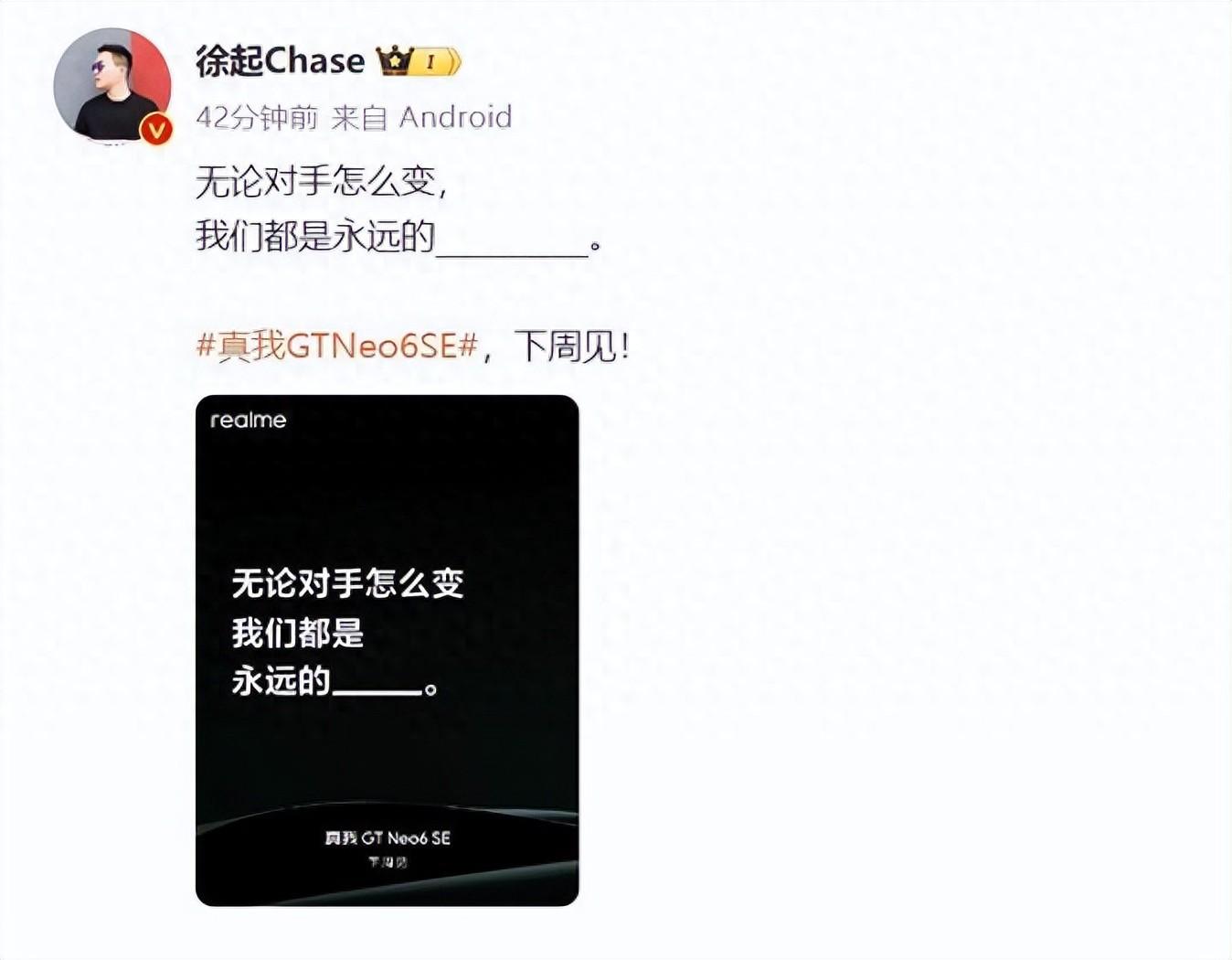 而同為OPPO系列的真我也沒閑著,總裁徐起也官宣了自家的新機真我GT Neo6 SE下周發布,還喊出了不管對手怎么變,我們永遠是第一的口號。看來友商是要對紅米展開瘋狂圍剿了,不過小智覺得,一加Ace 3V的吸引力恐怕比不過自家兄弟真我GT Neo6 SE