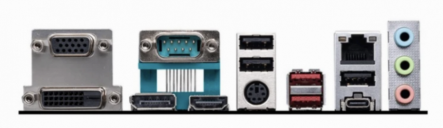 接口方面,這款主板提供 2 個 USB-A 3.2 接口、3 個 USB-A 2.0 接口、1 個 USB-C 3.2 接口、1 個 RJ45 接口、1 個 VGA 接口、1 個 DVI-D 接口、1 個 DP 接口、1 個 HDMI 接口、1 個 COM 串口、1 個 PS / 2 接口。