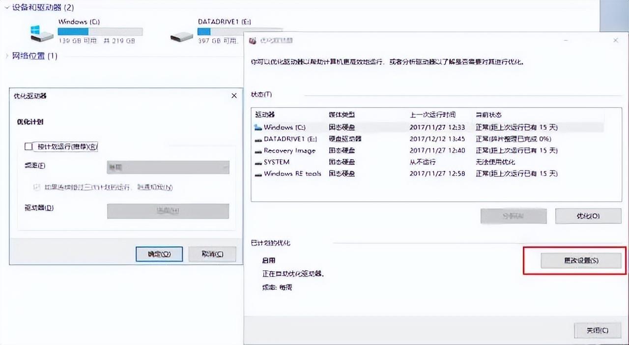 在“此電腦”中右鍵任意硬盤分區(qū)-屬性,點擊“工具”選項卡,在“對驅(qū)動器進行優(yōu)化和整理”下點擊“優(yōu)化”,根據(jù)自己的硬盤類型,機械硬盤啟用、固態(tài)硬盤關(guān)閉“已計劃的優(yōu)化”。