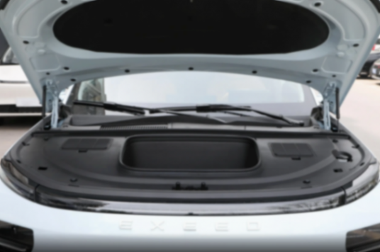星紀元ET的車尾保持了較為敦實的結構,尾窗區域增加了凸出的環繞式邊角飾板,熏黑的涂裝也讓其與尾窗相互融合,尾燈采用貫穿式結構,并在兩側燈組上進行了增粗處理,EXEED的銘牌則鑲嵌于尾窗與燈帶間隔區域,外凸的后包圍在尾門中部留下了清晰的折痕筋線,底部采用黑色組件覆蓋,并帶有擴散器的飾板裝飾,增程版同樣采用隱藏式排氣布局,保持了視覺上的簡化。