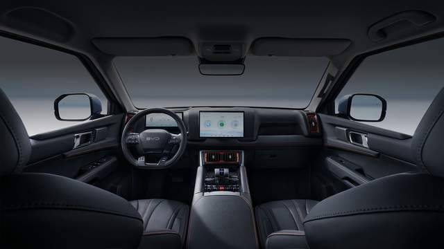 車內采用了比亞迪家族經典設計,配備了四幅式方向盤、10.25英寸液晶儀表以及12.8英寸中控屏,支持Apple CarPlay/Andriod Auto手機互聯系統。