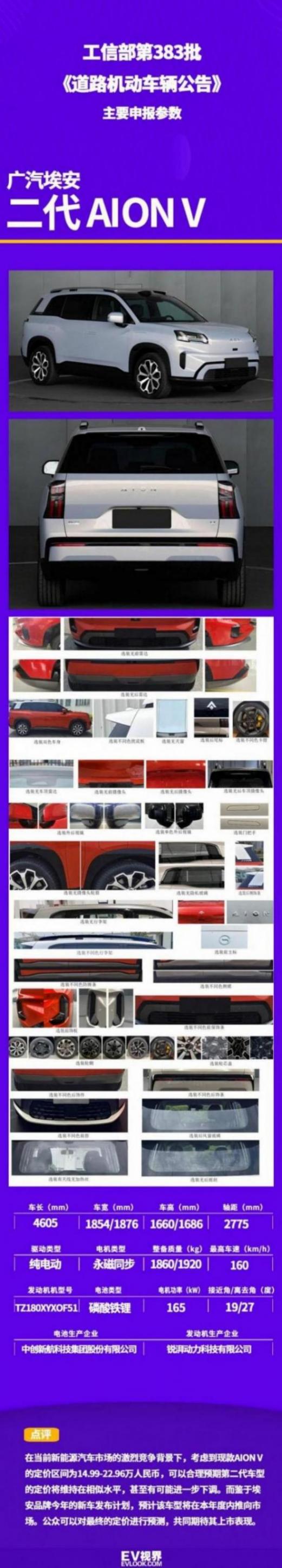 工信部公示第383批《道路機動車輛生產企業及產品公告》,其中第二代AION V在列其中。據悉,新車基于AEP純電平臺,AION V以其創新的設計理念和在智能駕駛領域的深度布局,即將引領市場潮流。官方已確認,這款備受期待的新車將于7月正式亮相市場。