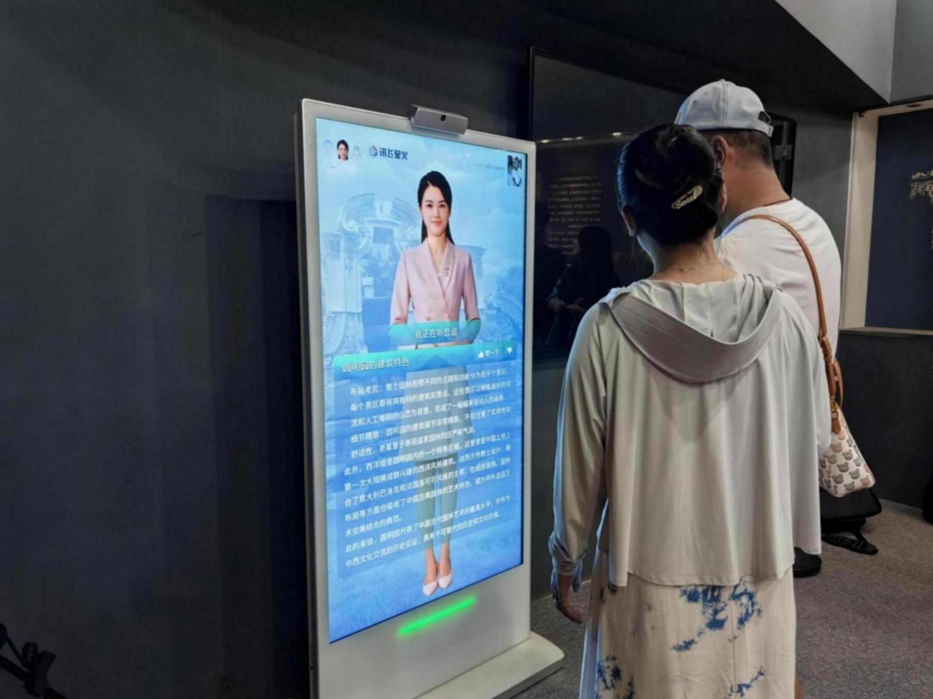 “看”得清游客的狀態,“聽”得懂游客的提問,這些都得益于多模態識別系統。包括小顏在內,4位虛擬導游擁有與真人相似的表情,可以作出流暢的手勢動作,在嘈雜環境中準確辨別并鎖定交流對象。科大訊飛虛擬平臺項目經理吳華偉說,與常規的問答導覽不同,大模型技術的加入讓虛擬導游更博學,可以在講解過程中旁征博引。