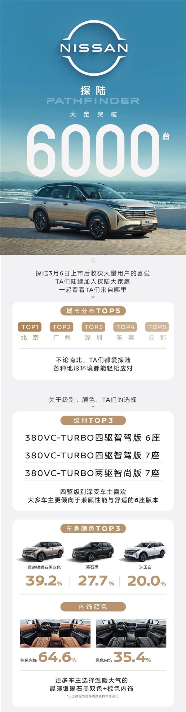 4月2日消息,據東風日產官方,品牌旗下全新中大型SUV車型探陸上市20多天后,累計大定量已超6000臺,在當前國產新能源如此火爆的情況下,這足以稱得上是好成績了。